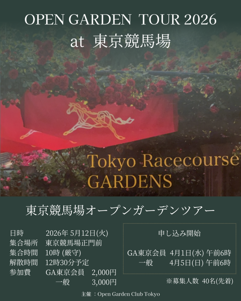 2026年のオープンガーデンツアーは、薔薇と宿根草の美しい5月に、府中・東京競馬場の